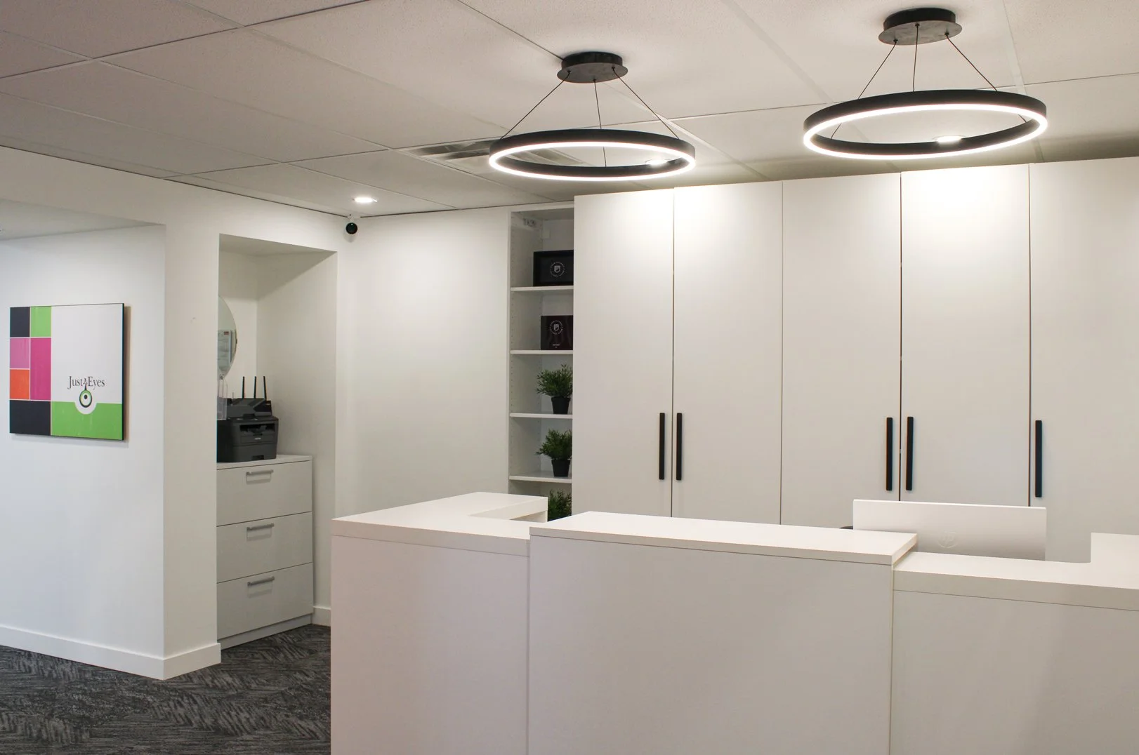 Rena Fairey, Founder of Just 4 Eyes, had just signed a lease for a new office space, after being in her current space for 19 years…and she had no idea what to do with it. But she did know one thing: she wanted her space to completely express her passion and expertise about holistic eyecare. (Not to mention a lot more storage than her previous office!)